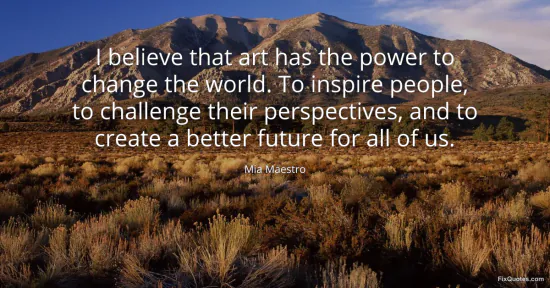 Maestro, Mia. (2026, January 15). I believe that art has the power to change the world. To inspire people, to challenge their perspectives, and to create a better future for all of us. FixQuotes. https://fixquotes.com/quotes/i-believe-that-art-has-the-power-to-change-the-171853/