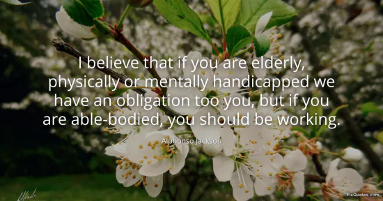 "I believe that if you are elderly, physically or mentally handicapped we have an obligation too you, but if you are able-bodied, you should be working"