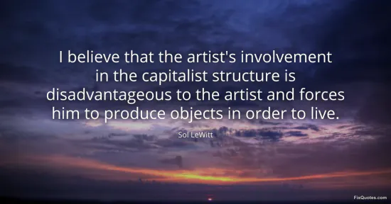 LeWitt, Sol. "I believe that the artist's involvement in the capitalist structure is disadvantageous to the artist and forces him to produce objects in order to live." FixQuotes. January 17, 2026. https://fixquotes.com/quotes/i-believe-that-the-artists-involvement-in-the-77672/.