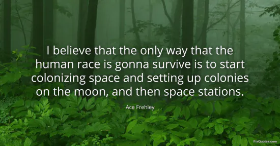 Frehley, Ace. "I believe that the only way that the human race is gonna survive is to start colonizing space and setting up colonies on the moon, and then space stations." FixQuotes. January 17, 2026. https://fixquotes.com/quotes/i-believe-that-the-only-way-that-the-human-race-63373/.