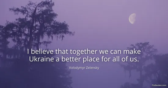 Zelensky, Volodymyr. "I believe that together we can make Ukraine a better place for all of us." FixQuotes. January 15, 2026. https://fixquotes.com/quotes/i-believe-that-together-we-can-make-ukraine-a-171832/.