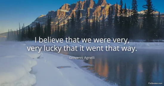 Agnelli, Giovanni. "I believe that we were very, very lucky that it went that way." FixQuotes. January 16, 2026. https://fixquotes.com/quotes/i-believe-that-we-were-very-very-lucky-that-it-132836/.