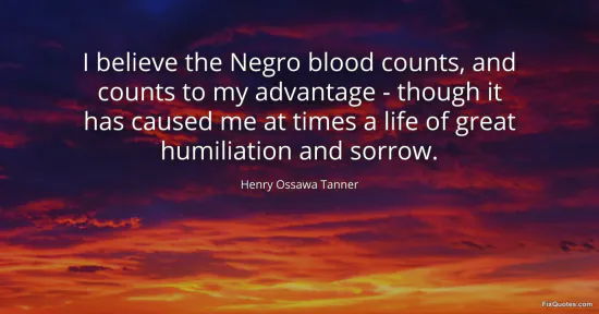 Tanner, Henry Ossawa. "I believe the Negro blood counts, and counts to my advantage - though it has caused me at times a life of great humiliation and sorrow." FixQuotes. January 16, 2026. https://fixquotes.com/quotes/i-believe-the-negro-blood-counts-and-counts-to-my-136088/.