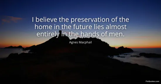 Macphail, Agnes. (2026, January 16). I believe the preservation of the home in the future lies almost entirely in the hands of men. FixQuotes. https://fixquotes.com/quotes/i-believe-the-preservation-of-the-home-in-the-108754/