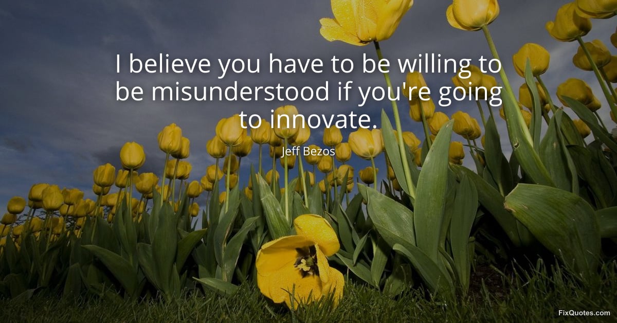 Bezos, Jeff. "I believe you have to be willing to be misunderstood if you're going to innovate." FixQuotes. March 25, 2026. https://fixquotes.com/quotes/i-believe-you-have-to-be-willing-to-be-186509/.