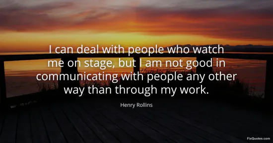 Rollins, Henry. (2026, February 19). I can deal with people who watch me on stage, but I am not good in communicating with people any other way than through my work. FixQuotes. https://fixquotes.com/quotes/i-can-deal-with-people-who-watch-me-on-stage-but-31452/