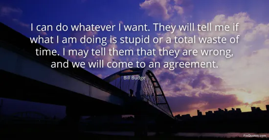 Budge, Bill. (2026, January 16). I can do whatever I want. They will tell me if what I am doing is stupid or a total waste of time. I may tell them that they are wrong, and we will come to an agreement. FixQuotes. https://fixquotes.com/quotes/i-can-do-whatever-i-want-they-will-tell-me-if-117565/