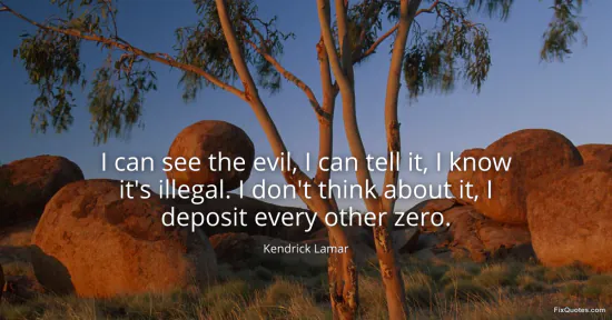 Lamar, Kendrick. "I can see the evil, I can tell it, I know it's illegal. I don't think about it, I deposit every other zero." FixQuotes. February 1, 2026. https://fixquotes.com/quotes/i-can-see-the-evil-i-can-tell-it-i-know-its-184838/.