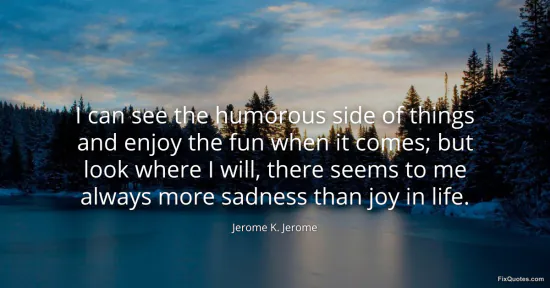 Jerome, Jerome K. (2026, January 18). I can see the humorous side of things and enjoy the fun when it comes; but look where I will, there seems to me always more sadness than joy in life. FixQuotes. https://fixquotes.com/quotes/i-can-see-the-humorous-side-of-things-and-enjoy-23599/