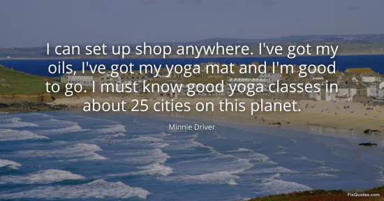 Driver, Minnie. "I can set up shop anywhere. I've got my oils, I've got my yoga mat and I'm good to go. I must know good yoga classes in about 25 cities on this planet." FixQuotes. January 16, 2026. https://fixquotes.com/quotes/i-can-set-up-shop-anywhere-ive-got-my-oils-ive-105095/.