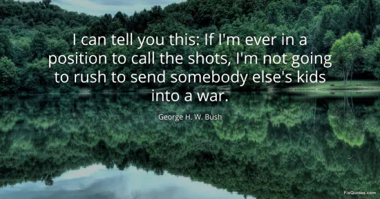 Bush, George H. W. "I can tell you this: If I'm ever in a position to call the shots, I'm not going to rush to send somebody else's kids into a war." FixQuotes. January 15, 2026. https://fixquotes.com/quotes/i-can-tell-you-this-if-im-ever-in-a-position-to-146516/.