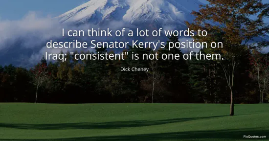 Cheney, Dick. "I can think of a lot of words to describe Senator Kerry's position on Iraq; "consistent" is not one of them." FixQuotes. January 18, 2026. https://fixquotes.com/quotes/i-can-think-of-a-lot-of-words-to-describe-senator-9619/.