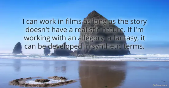 Puig, Manuel. (2026, January 15). I can work in films as long as the story doesn't have a realistic nature. If I'm working with an allegory, a fantasy, it can be developed in synthetic terms. FixQuotes. https://fixquotes.com/quotes/i-can-work-in-films-as-long-as-the-story-doesnt-155495/