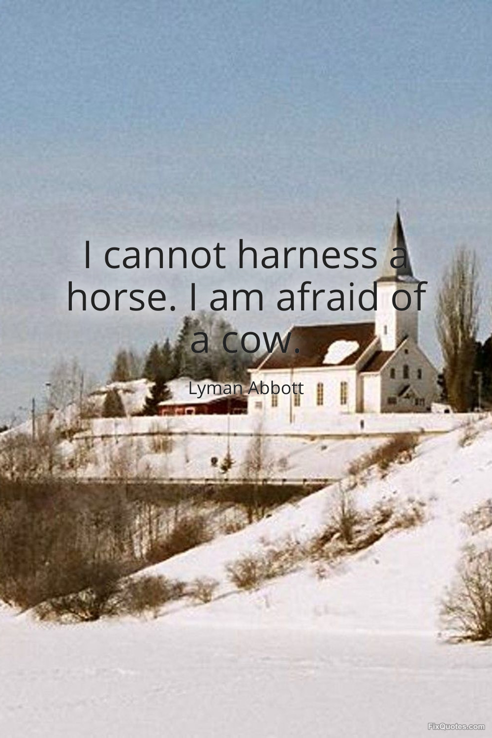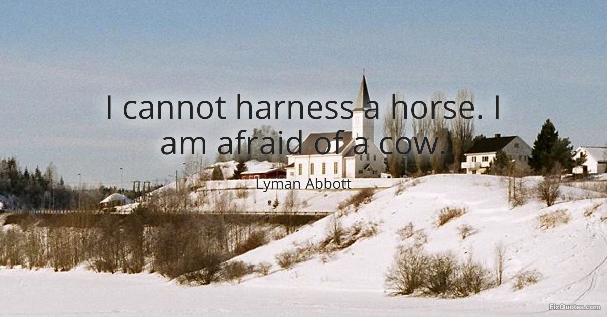 Abbott, Lyman. (2026, January 15). I cannot harness a horse. I am afraid of a cow. FixQuotes. https://fixquotes.com/quotes/i-cannot-harness-a-horse-i-am-afraid-of-a-cow-63633/