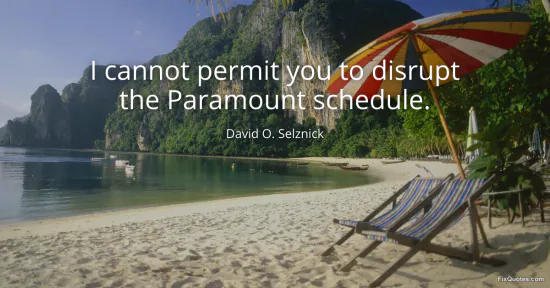 Selznick, David O. "I cannot permit you to disrupt the Paramount schedule." FixQuotes. January 16, 2026. https://fixquotes.com/quotes/i-cannot-permit-you-to-disrupt-the-paramount-124222/.