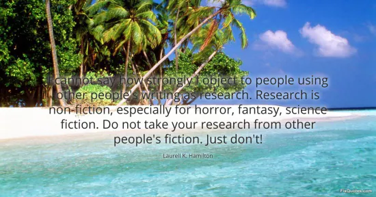 Hamilton, Laurell K. (2026, February 18). I cannot say how strongly I object to people using other people's writing as research. Research is non-fiction, especially for horror, fantasy, science fiction. Do not take your research from other people's fiction. Just don't! FixQuotes. https://fixquotes.com/quotes/i-cannot-say-how-strongly-i-object-to-people-81272/