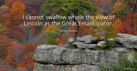 Obama, Barack. (2026, January 17). I cannot swallow whole the view of Lincoln as the Great Emancipator. FixQuotes. https://fixquotes.com/quotes/i-cannot-swallow-whole-the-view-of-lincoln-as-the-27988/