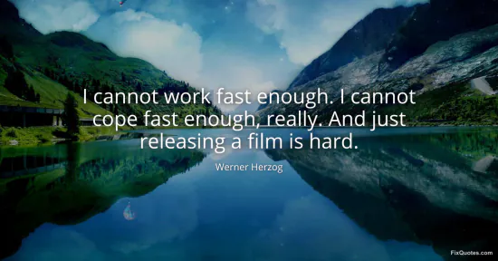 Herzog’s complaint isn’t really about scheduling; it’s about time as an adversary and filmmaking as a kind of existential manual labor. “I cannot work fast enough” lands like a confession, but it’s also a provocation: a director famous for dragging cameras into jungles and onto volcanoes insisting that even his velocity feels inadequate. The repetition tightens the screw. “I cannot cope fast enough, really” shifts from craft to psyche, from output to survival. He’s not merely chasing deadlines; he’s outrunning the emotional and logistical entropy that gathers around every project.