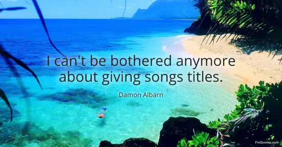 Albarn, Damon. "I can't be bothered anymore about giving songs titles." FixQuotes. January 17, 2026. https://fixquotes.com/quotes/i-cant-be-bothered-anymore-about-giving-songs-76356/.