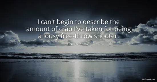 Rodman, Dennis. (2026, January 17). I can't begin to describe the amount of crap I've taken for being a lousy free-throw shooter. FixQuotes. https://fixquotes.com/quotes/i-cant-begin-to-describe-the-amount-of-crap-ive-49166/