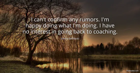 Johnson, Jimmy. (2026, January 15). I can't confirm any rumors. I'm happy doing what I'm doing. I have no interest in going back to coaching. FixQuotes. https://fixquotes.com/quotes/i-cant-confirm-any-rumors-im-happy-doing-what-im-167765/