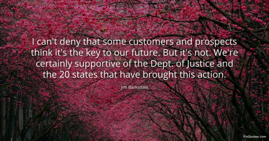 Barksdale, Jim. (2026, January 16). I can't deny that some customers and prospects think it's the key to our future. But it's not. We're certainly supportive of the Dept. of Justice and the 20 states that have brought this action. FixQuotes. https://fixquotes.com/quotes/i-cant-deny-that-some-customers-and-prospects-100563/
