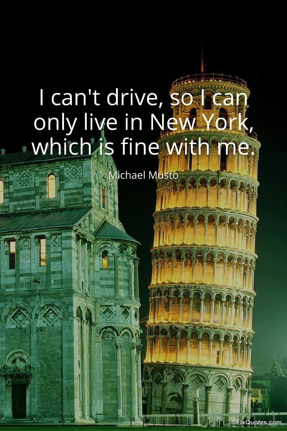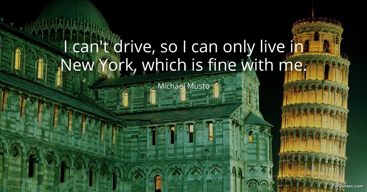 Musto, Michael. (2026, January 16). I can't drive, so I can only live in New York, which is fine with me. FixQuotes. https://fixquotes.com/quotes/i-cant-drive-so-i-can-only-live-in-new-york-which-97167/