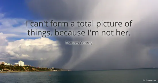 Conroy, Frances. (2026, February 16). I can't form a total picture of things, because I'm not her. FixQuotes. https://fixquotes.com/quotes/i-cant-form-a-total-picture-of-things-because-im-169383/