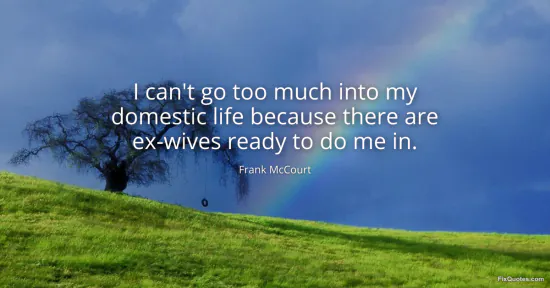 McCourt, Frank. (2026, January 17). I can't go too much into my domestic life because there are ex-wives ready to do me in. FixQuotes. https://fixquotes.com/quotes/i-cant-go-too-much-into-my-domestic-life-because-78752/