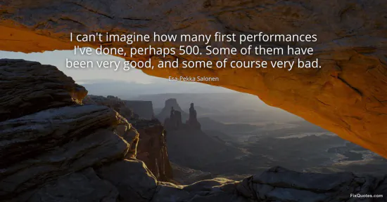 Salonen, Esa-Pekka. "I can't imagine how many first performances I've done, perhaps 500. Some of them have been very good, and some of course very bad." FixQuotes. January 15, 2026. https://fixquotes.com/quotes/i-cant-imagine-how-many-first-performances-ive-143310/.