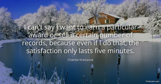 Kreviazuk, Chantal. (2026, January 15). I can't say I want to earn a particular award or sell a certain number of records, because even if I do that, the satisfaction only lasts five minutes. FixQuotes. https://fixquotes.com/quotes/i-cant-say-i-want-to-earn-a-particular-award-or-140122/