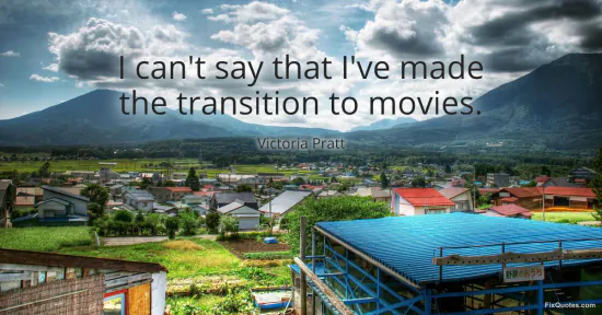Pratt, Victoria. (2026, January 16). I can't say that I've made the transition to movies. FixQuotes. https://fixquotes.com/quotes/i-cant-say-that-ive-made-the-transition-to-movies-90734/