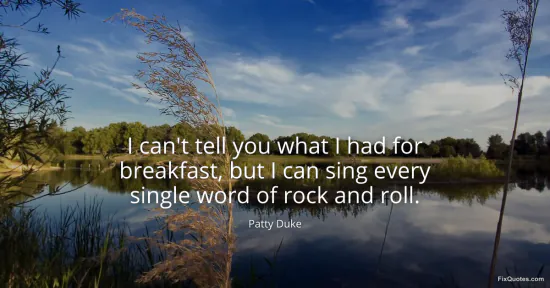 Duke, Patty. "I can't tell you what I had for breakfast, but I can sing every single word of rock and roll." FixQuotes. January 17, 2026. https://fixquotes.com/quotes/i-cant-tell-you-what-i-had-for-breakfast-but-i-80102/.