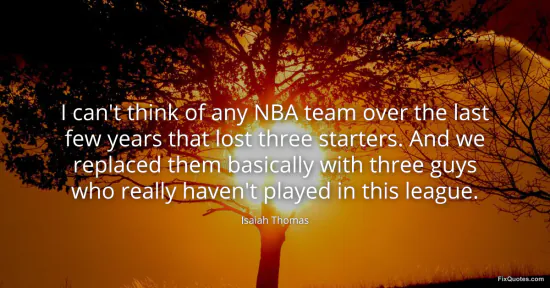 Thomas, Isaiah. "I can't think of any NBA team over the last few years that lost three starters. And we replaced them basically with three guys who really haven't played in this league." FixQuotes. January 17, 2026. https://fixquotes.com/quotes/i-cant-think-of-any-nba-team-over-the-last-few-67565/.