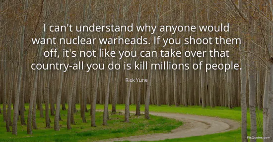 Yune, Rick. (2026, January 15). I can't understand why anyone would want nuclear warheads. If you shoot them off, it's not like you can take over that country-all you do is kill millions of people. FixQuotes. https://fixquotes.com/quotes/i-cant-understand-why-anyone-would-want-nuclear-153197/