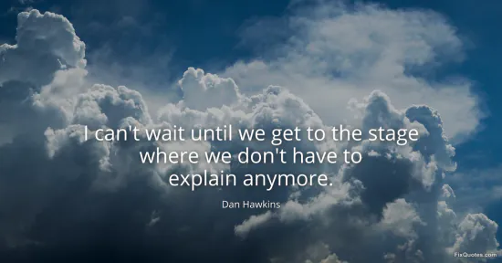 Hawkins, Dan. (2026, January 17). I can't wait until we get to the stage where we don't have to explain anymore. FixQuotes. https://fixquotes.com/quotes/i-cant-wait-until-we-get-to-the-stage-where-we-38122/