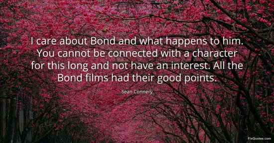 Connery, Sean. (2026, January 17). I care about Bond and what happens to him. You cannot be connected with a character for this long and not have an interest. All the Bond films had their good points. FixQuotes. https://fixquotes.com/quotes/i-care-about-bond-and-what-happens-to-him-you-73623/