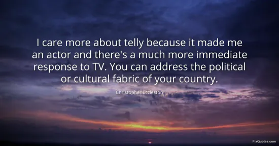 Eccleston, Christopher. (2026, January 17). I care more about telly because it made me an actor and there's a much more immediate response to TV. You can address the political or cultural fabric of your country. FixQuotes. https://fixquotes.com/quotes/i-care-more-about-telly-because-it-made-me-an-66874/