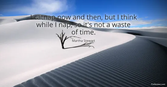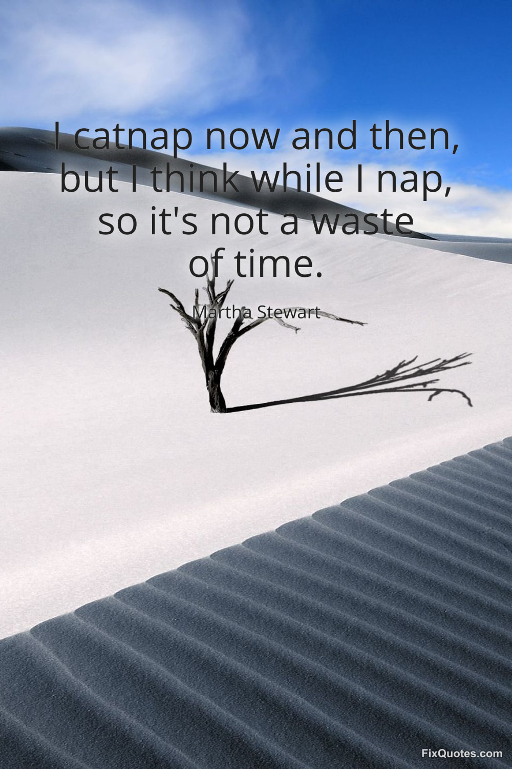 Stewart, Martha. (2026, January 16). I catnap now and then, but I think while I nap, so it's not a waste of time. FixQuotes. https://fixquotes.com/quotes/i-catnap-now-and-then-but-i-think-while-i-nap-so-118071/
