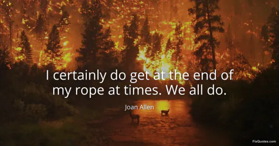 Allen, Joan. "I certainly do get at the end of my rope at times. We all do." FixQuotes. January 16, 2026. https://fixquotes.com/quotes/i-certainly-do-get-at-the-end-of-my-rope-at-times-85854/.