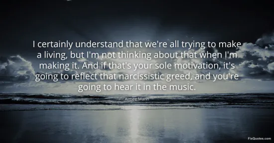 "I certainly understand that we're all trying to make a living, but I'm not thinking about that when I'm making it. And if that's your sole motivation, it's going to reflect that narcissistic greed, and you're going to hear it in the music"