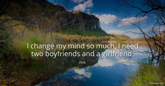 Pink. "I change my mind so much, I need two boyfriends and a girlfriend." FixQuotes. February 16, 2026. https://fixquotes.com/quotes/i-change-my-mind-so-much-i-need-two-boyfriends-120825/.