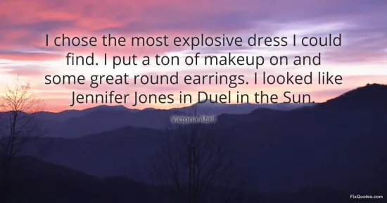 Abril, Victoria. (2026, January 16). I chose the most explosive dress I could find. I put a ton of makeup on and some great round earrings. I looked like Jennifer Jones in Duel in the Sun. FixQuotes. https://fixquotes.com/quotes/i-chose-the-most-explosive-dress-i-could-find-i-90732/