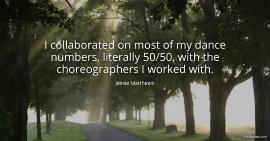 Matthews, Jessie. (2026, January 16). I collaborated on most of my dance numbers, literally 50/50, with the choreographers I worked with. FixQuotes. https://fixquotes.com/quotes/i-collaborated-on-most-of-my-dance-numbers-85693/