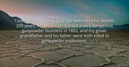 "I come from a family that has been here for almost 200 years. My ancestors started a very dangerous gunpowder business in 1802, and my great- grandfather and his father were both killed in gunpowder explosions"