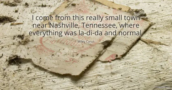Cyrus, Miley. (2026, January 17). I come from this really small town near Nashville, Tennessee, where everything was la-di-da and normal. FixQuotes. https://fixquotes.com/quotes/i-come-from-this-really-small-town-near-nashville-77923/
