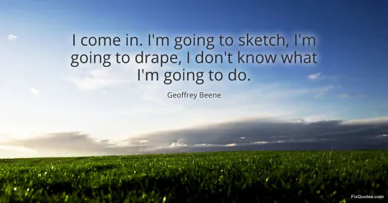 Beene, Geoffrey. (2026, January 18). I come in. I'm going to sketch, I'm going to drape, I don't know what I'm going to do. FixQuotes. https://fixquotes.com/quotes/i-come-in-im-going-to-sketch-im-going-to-drape-i-12148/