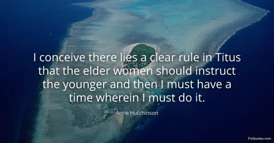 Hutchinson, Anne. (2026, January 17). I conceive there lies a clear rule in Titus that the elder women should instruct the younger and then I must have a time wherein I must do it. FixQuotes. https://fixquotes.com/quotes/i-conceive-there-lies-a-clear-rule-in-titus-that-63792/