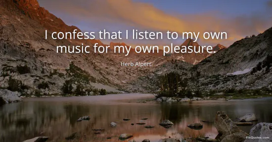 Alpert, Herb. "I confess that I listen to my own music for my own pleasure." FixQuotes. January 16, 2026. https://fixquotes.com/quotes/i-confess-that-i-listen-to-my-own-music-for-my-101711/.