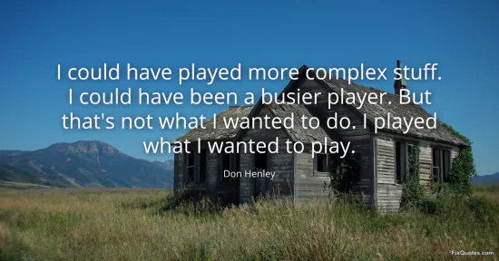 Henley, Don. "I could have played more complex stuff. I could have been a busier player. But that's not what I wanted to do. I played what I wanted to play." FixQuotes. January 16, 2026. https://fixquotes.com/quotes/i-could-have-played-more-complex-stuff-i-could-132274/.
